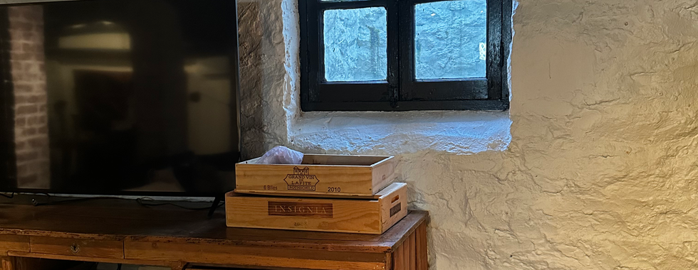 The stone walls were a super cool textural feature, but they appeared very mayo-yellow. Not ideal. So we decided to hit the stone walls with a light beige lime wash and to add a blue grey lime wash to the drywalled areas. To wrap our heads around the floor plan, we just needed to get in there and start moving stuff around. In the meantime, I was looking at inspiration to nail down the design direction. I was leaning into the wine cellar vibe and the stone cellar thing. The house has a French old world feeling, so Mediterranean Modern made sense. Since this project was fast and furious, on a budget and we weren't buying much furniture, I skipped the mood board step and just created a Pinterest page to collect inspiration and share with Judy. She liked what she was saw, so we were off to the races!